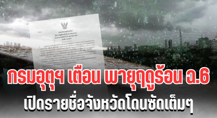 ประกาศเเล้ว! กรมอุตุฯ เตือนพายุฤดูร้อน ฉบับที่ 6 เปิดรายชื่อจังหวัดโดนซัดเต็มๆ