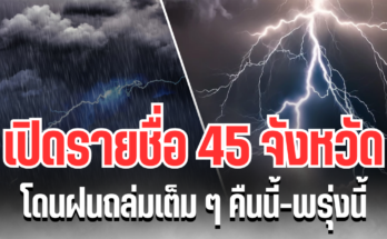 ประกาศเเล้ว! กรมอุตุฯ เปิดรายชื่อ 45 จังหวัด โดนฝนถล่มเต็ม ๆ คืนนี้-พรุ่งนี้