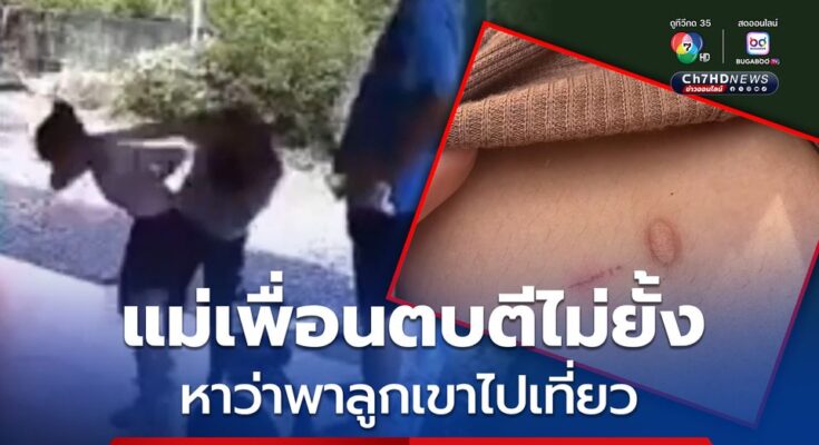 เกินไปไหม ? กล้องวงจรปิดจับภาพแม่ของเพื่อนคนหนึ่ง จิกหัวตบ ด.ญ.อายุ 12 ขวบไม่ยั้ง อ้างโมโหพาลูกเขาหนีเที่ยว ด้าน ด.ญ.12 ขวบ ยืนยันลูกแม่นั่นแหละขี่รถ จยย.มารับเอง