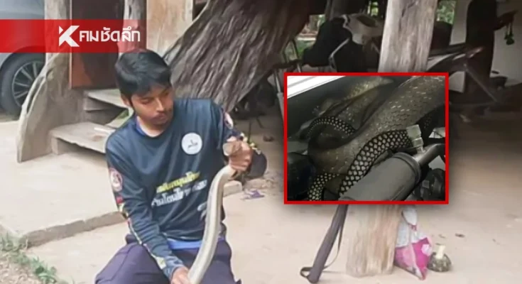 เหตุระทึกที่สงขลา พบงูจงอางยาวเกือบ 3 เมตรซ่อนในห้องเครื่องรถเก๋ง เจ้าหน้าที่เข้าจับได้อย่างปลอดภัย ขณะที่ชาวบ้านไม่พลาดจดเลขทะเบียน 375 เป็นเลขเด็ดลุ้นโชคสลากกินแบ่งรัฐบาลงวด 16 มีนาคม 2569