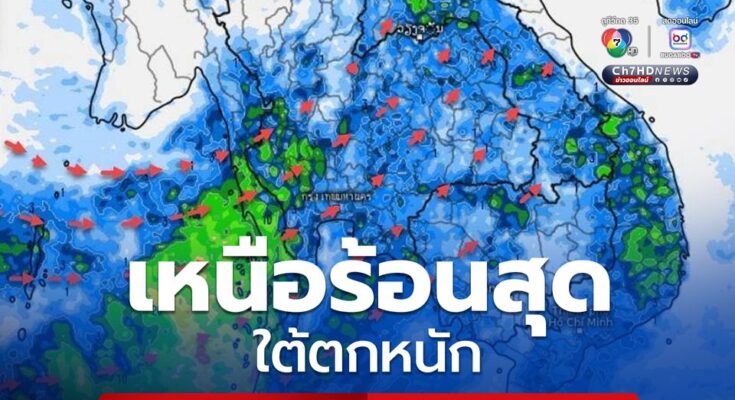 พยากรณ์อากาศวันนี้ (7 พ.ค.68) ภาคใต้ยังคงมีฝนตกหนักบางแห่ง ทะเลอันดามัน ภาคใต้ และอ่าวไทย บริเวณที่มีฝนฟ้าคะนองคลื่นสูงมากกว่า 2 เมตร