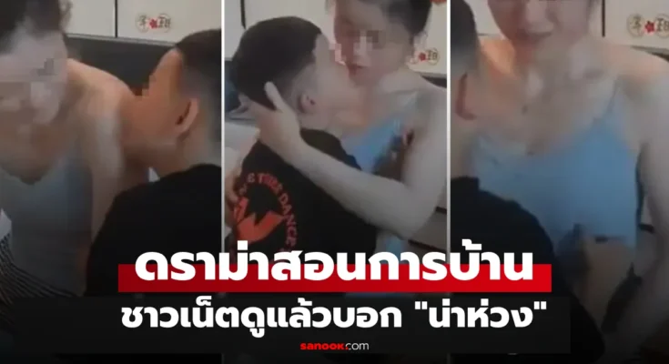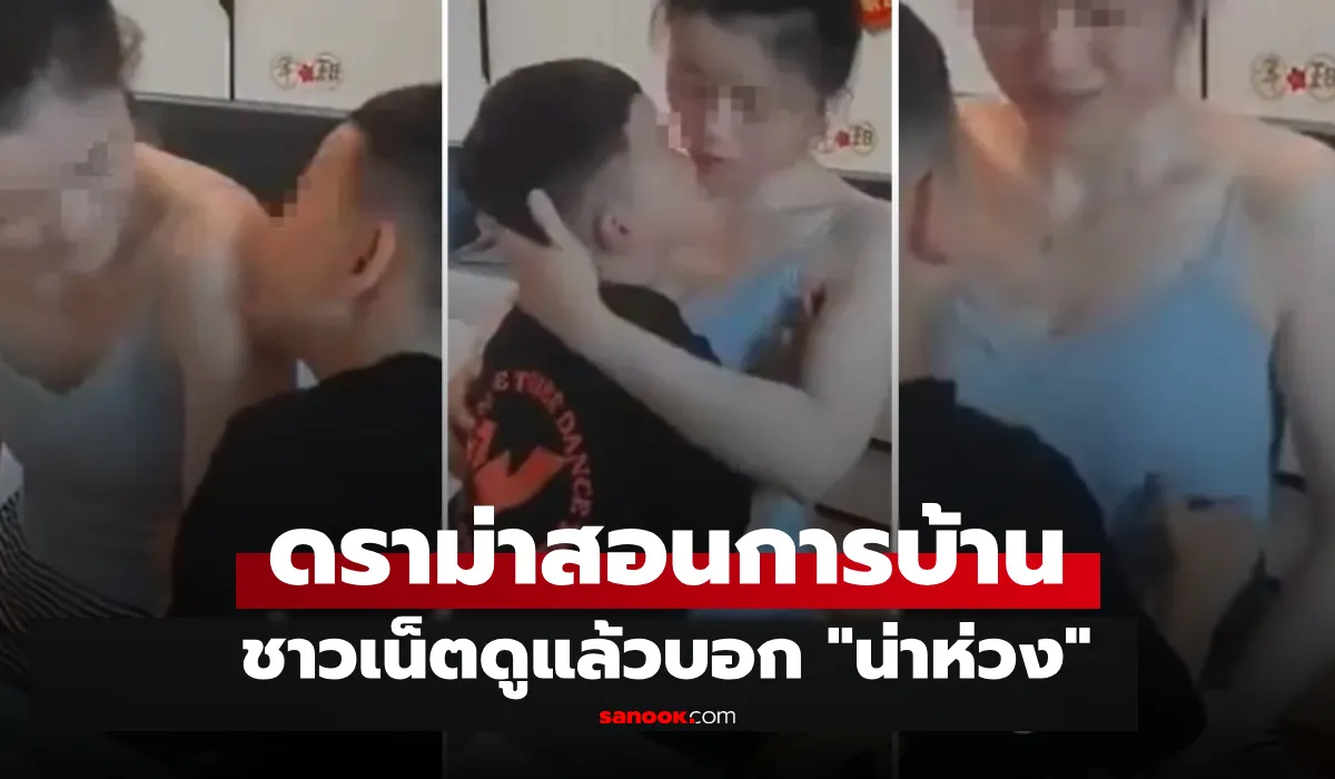 “สอนการบ้านลูกชาย” กลายเป็นดร่าม่า ชาวเน็ตดูแล้วเป็นห่วง แม่ให้นั่งตัก ปล่อยจุ๊บปาก-จุ๊บหน้าอก