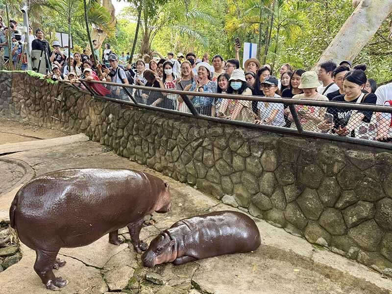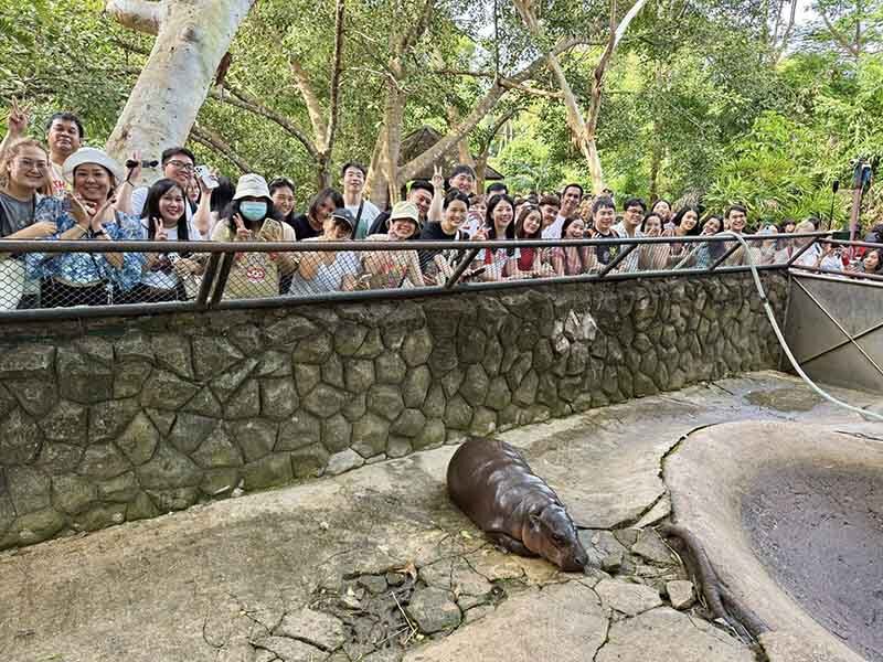 วันที่ 10 ก.ค. 2568 ที่สวนสัตว์เปิดเขาเขียว จ.ชลบุรี จัดงานฉลองวันเกิดครบรอบ 1 ขวบ ให้กับ หมูเด้ง ฮิปโปโปเตมัสแคระ ดาวดังระดับโลก ลูกพ่อโทนี่และแม่โจน่า โดยมีแฟนคลับมาร่วมงานกันคึกคัก