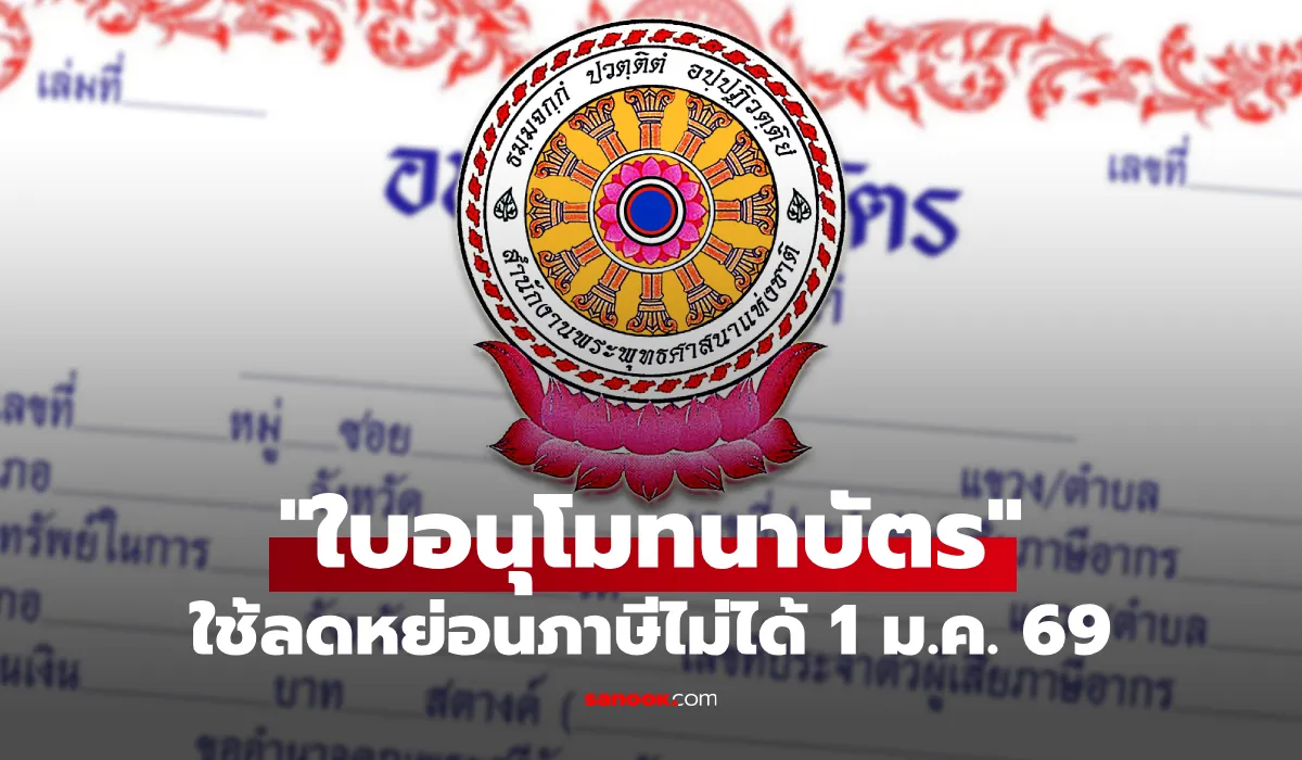 กรมสรรพากร ยกเลิกใช้ใบอนุโมทนาบัตรลดหย่อนภาษี เริ่ม 1 ม.ค. 69