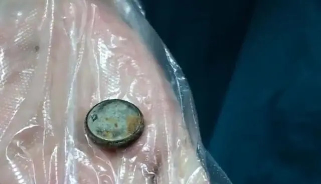 เมื่อถึงโรงพยาบาล แพทย์ตรวจพบว่าเด็กกลืนแบตเตอรี่กระดุมเข้าไปจริง และต้องรีบทำการนำออก โชคดีที่การพามารักษาอย่างรวดเร็วช่วยลดความเสียหายต่อหลอดอาหารได้ทันเวลา